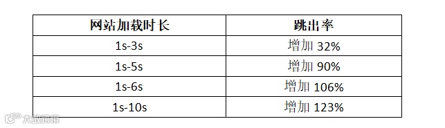由上表可见,随着网站加载时长的增加,用户的跳出率也在不断提高,这就警示我们一定要做好网站速度的优化,不然即使用户被好的内容吸引点击进入了网站,也会因为加载速度过慢而立即退出。