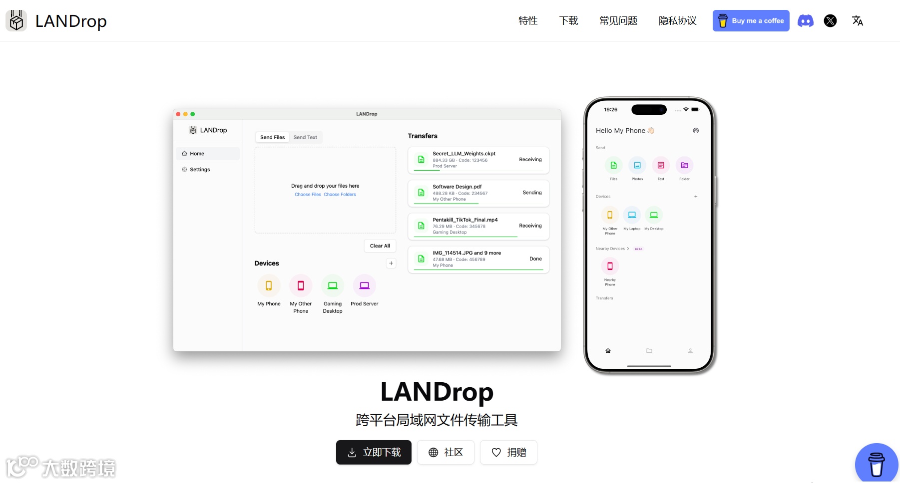 2.LocalSend & LANDrop:开源免费的本地传输工具,无需网络即可实现手机与电脑间的高速文件传输。