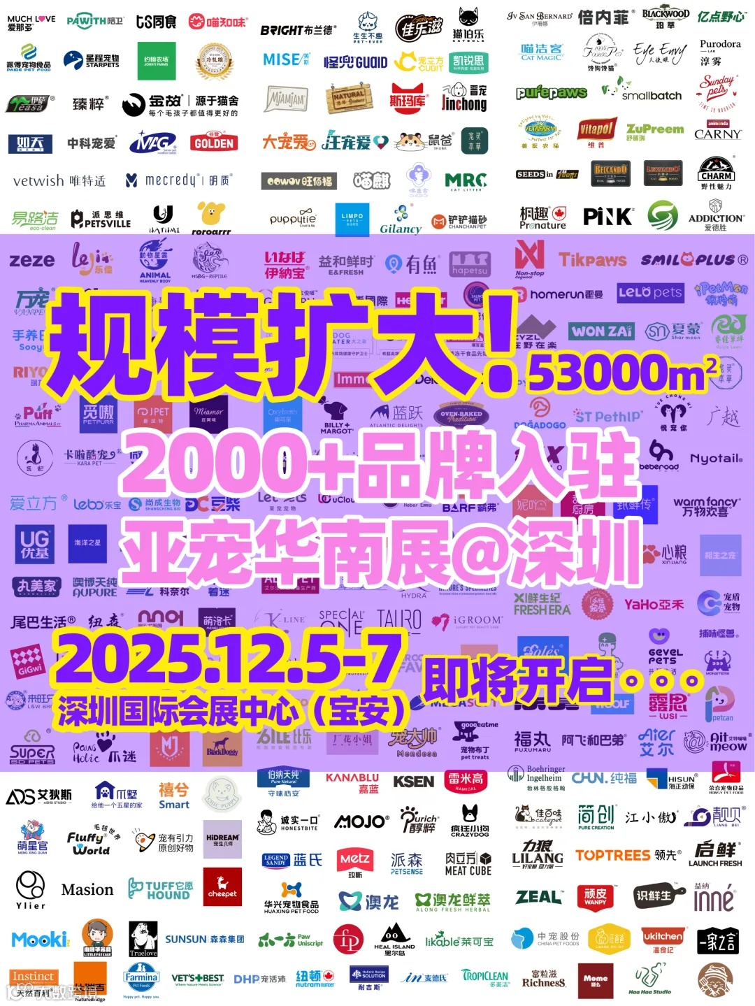 2025 年 12 月 5 日至 7 日,深圳国际会展中心 (宝安),诚邀全行业伙伴年末共聚鹏城,共赴这场集专业与活力于一体的宠物行业岁末狂欢大SHOW!