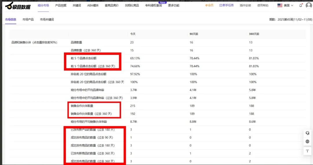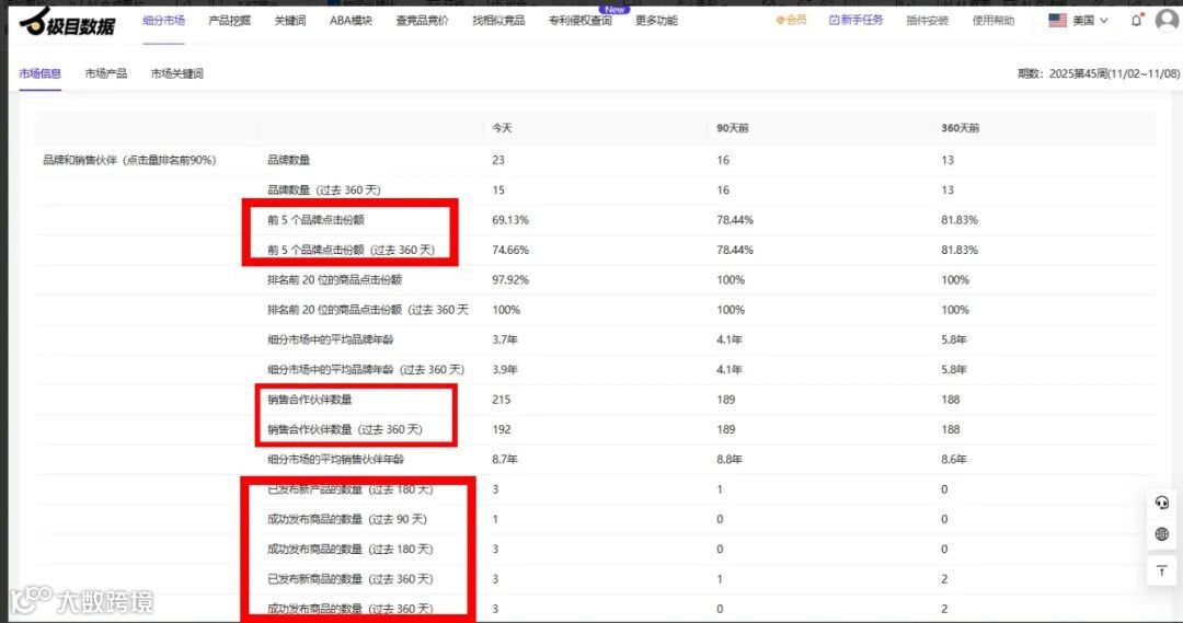 品牌点击份额和商品点击份额越高,说明头部ASIN和品牌垄断度越高。这里品牌点击份额都69%以上。