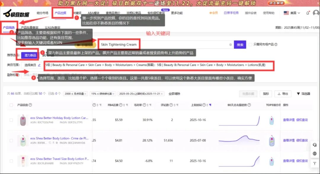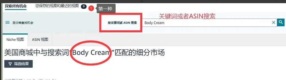 第一种,用关键词或ASIN搜索搜BODYCREAM