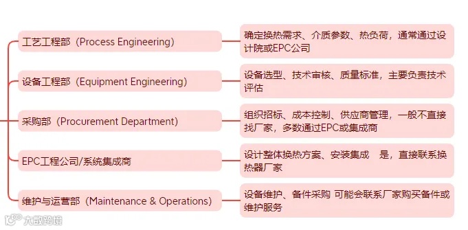 可以看到,EPC工程公司/系统集成商才是直接联系换热器厂家的一方;最后是否符合要求,也是由他们来评估决定的。