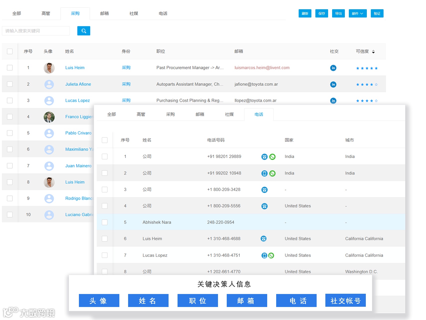 之后在通过客户画像,找到买手负责人即可开始触达;
