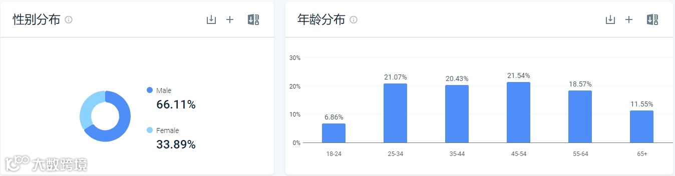 通过Google搜索同款,我们会发现Ryobi的产品定价是较低的,同时根据similarweb数据显示,Ryobi官网女性用户占比为33.89%,男性用户占比为66.11%,年龄分布的较为均匀,各个年龄阶段占比差距并不大,可见其主要受众就是家庭用户、DIY爱好者以及预算有限的用户。