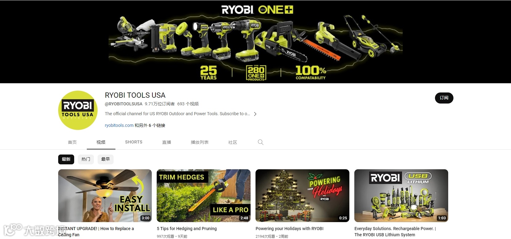 YouTube营销:Ryobi在YouTube上创建了官方频道,并持续发布了大量的教程类视频,这为其累积了近10万的粉丝。虽然YouTube并未给其网站带来非常多的直接流量,但其对提升用户粘性和扩大品牌知名度是非常有帮助的。