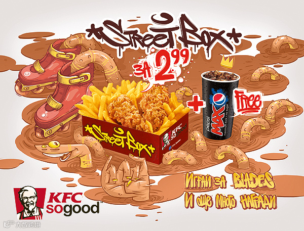 看过肯德基的这个早安海报才猛然想起很少留意他们家的其他海报,于是我上网搜集了一下发现肯德基的海报居然都是脑洞大开的创意类型,画风都是这样...