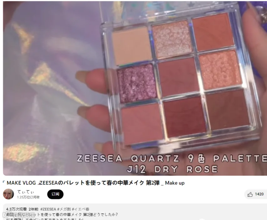尤其是ZEESEA滋色,颇为重视日本KOL的投放,而YouTube上由日本美妆博主制作的中国妆主题热门视频中,大多为ZEESEA滋色的产品。不仅如此,还在亚马逊日本网站上,占据着中国美妆销售第一名的宝座。