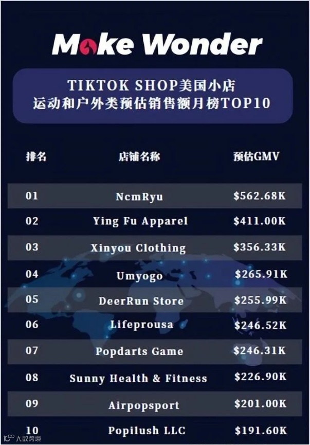 根据Echotik最新数据显示,在上个月运动和户外这一品类销售额前十的月榜单中,NcmRyu荣登第一,在最近30天的销售额达到了562.68K美金,创新销售纪录。