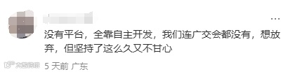 没有平台,全靠自主开发,连广交会都没有,想放弃,但坚持这么久又不甘心。