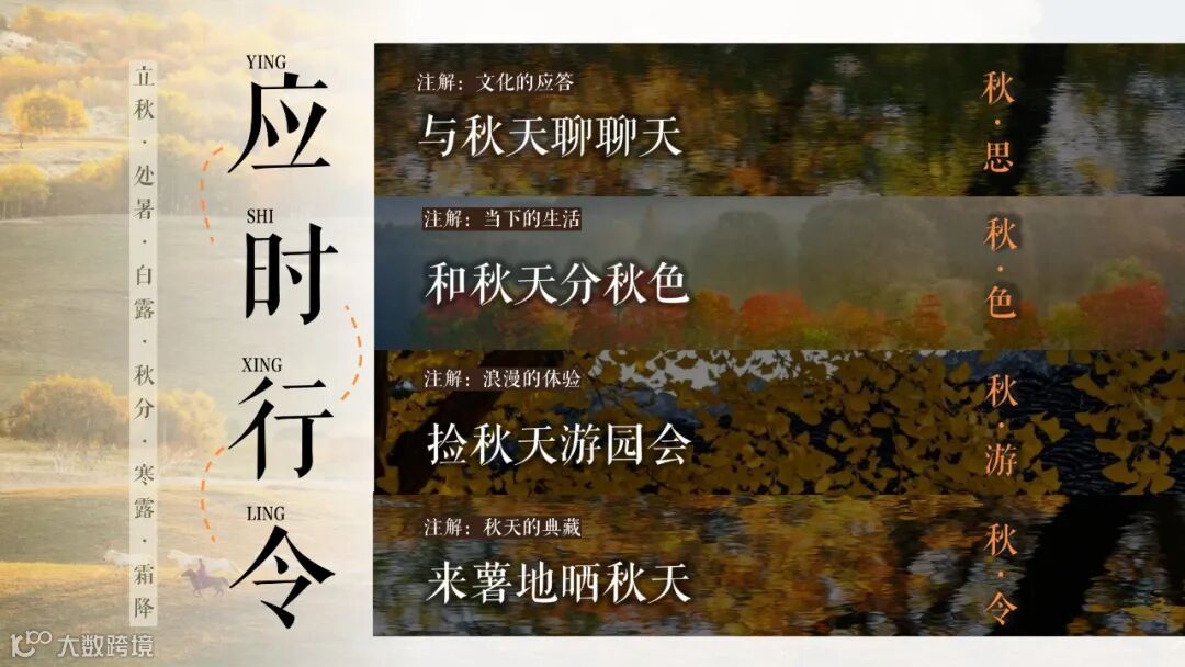 “和秋天分秋色”:发起全民色彩征集,打造中式秋日色卡,推动品牌色号融入生活场景。