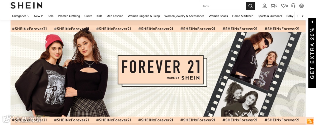 Forever21已正式上线SHEIN官网。图源:SHEIN官网