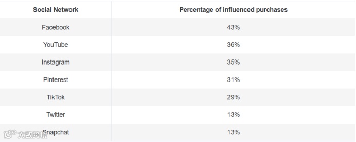 根据Techreport数据显示,Facebook、YouTube、Instagram、Pinterest、TikTok等社交媒体平台对2022年圣诞节购物影响分别占比43%、36%、35%、31%、29%。