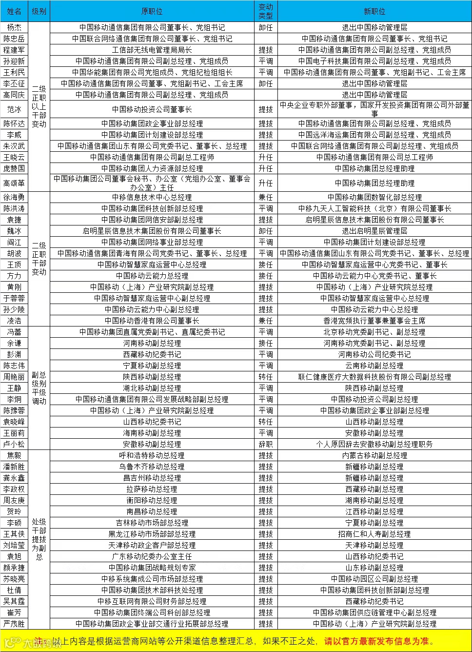 一份涵盖50余个岗位的调整名单,正在改写中国移动的权力版图。