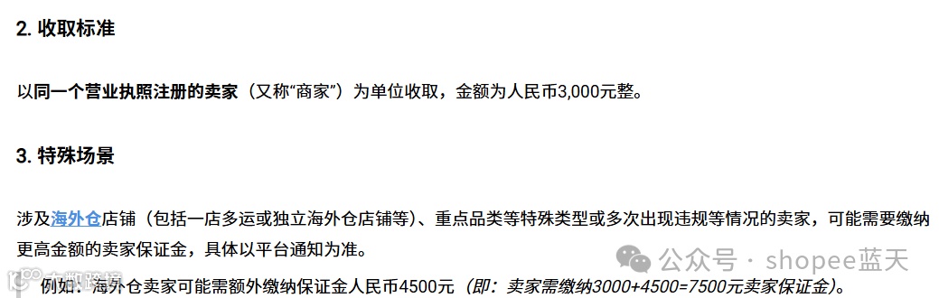 目前,Shopee对所有大陆跨境卖家强制收取最低3000元保证金,拥有海外仓的卖家费用更高。该政策不适用于香港及本土店铺。若卖家超过三个月未缴纳,将被取消销售权限[k]。