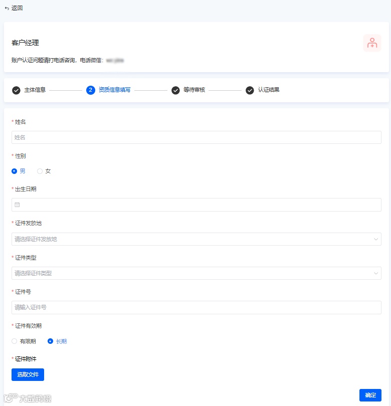 (所有信息均需使用海外信息“海外身份证”“海外护照”,国内信息审核拒绝) 如果有不懂的可以联系专属客户经理