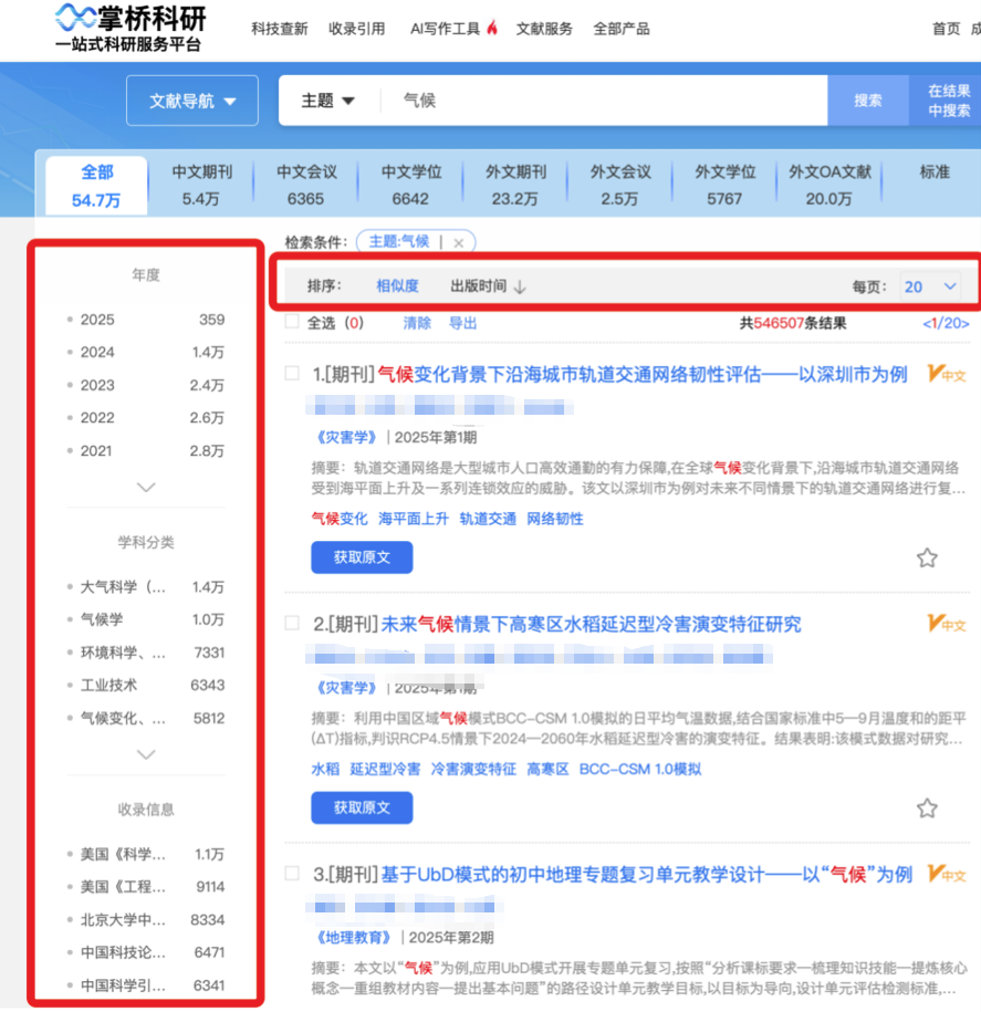 如果我们想再加快自己检索的效率,就可以直接使用页面左侧的筛选项为我们检索效率再添一把火~