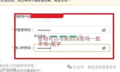 4. 设置登录密码:设置字母加数字组成的新登录密码,可与U盾密码一致[k]。