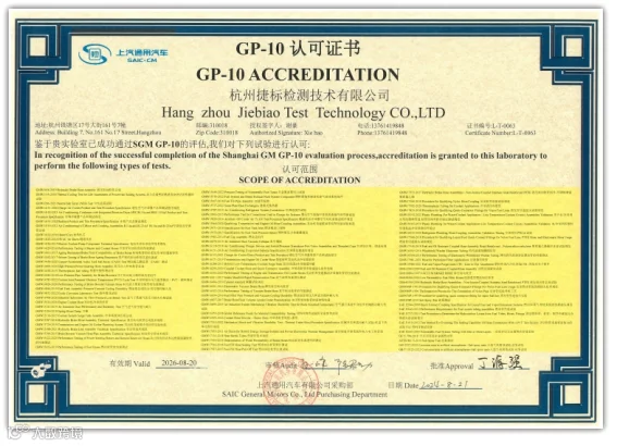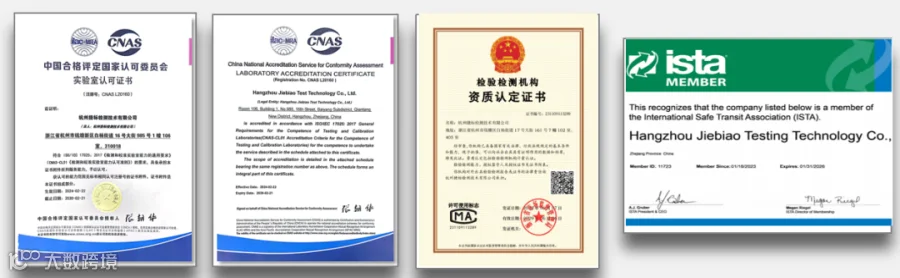 杭州捷标检测技术有限公司成立于2009年,是一家专注于产品检测认证与质量控制的第三方技术服务机构,试验场地达1600平方米[k]。实验室以可靠性测试为主、性能测试为辅,提供一站式检测解决方案,已通过CMA、CNAS、ISTA认证[k]。公司拥有先进检测设备和专业技术团队,服务领域涵盖汽车制造、轨道交通、航空航天、电子电器、医疗器械、风电能源等行业,检测能力覆盖环境可靠性、机械物理性能、化学分析、疲劳寿命、电学及热学等多个维度[k]。