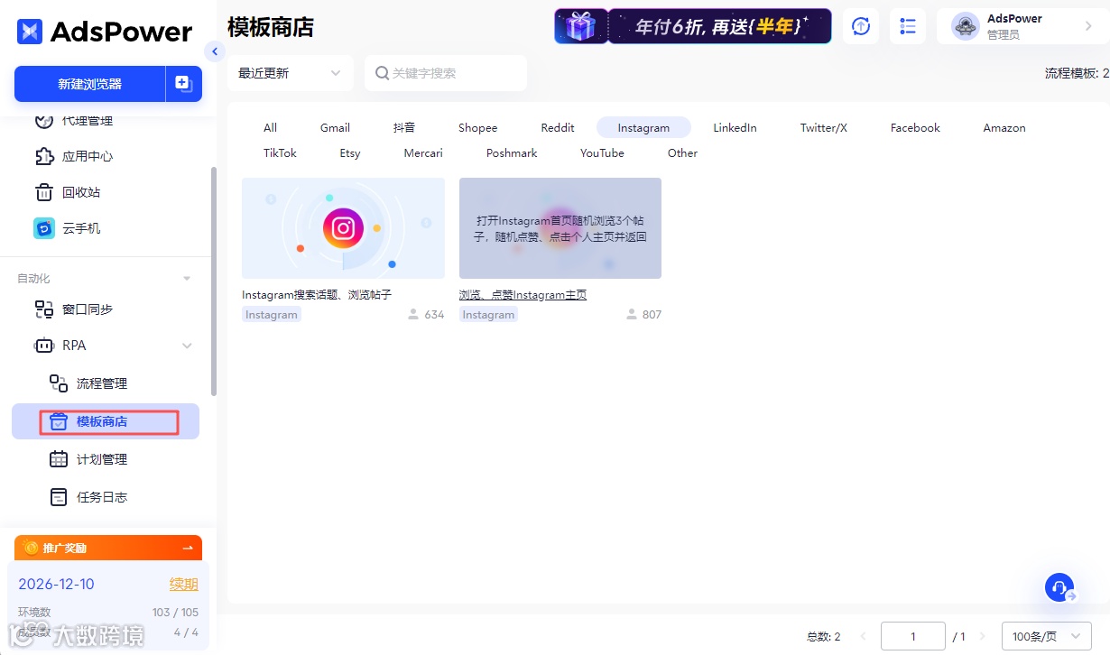 此时可以借助 AdsPower 指纹浏览器管理账号。其免费 RPA 功能能自动完成内容浏览、点赞等日常操作,节省人力又能保持账号行为的自然性。