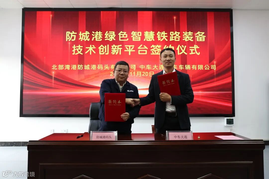 11月20日,“防城港绿色智慧铁路装备技术创新平台揭牌仪式”在防城港码头铁路智慧调度中心党员活动室举行。该平台由中车大连机车车辆有限公司(以下简称:中车大连)与北部湾港防城港码头有限公司(以下简称:防城港码头)携手共建,旨在深化绿色智慧铁路装备技术的研发与应用,推动区域物流产业高质量发展。中车大连纪委书记代兴军,防城港码头纪委书记伍君贵、副总经理张品及相关部门负责人参加。