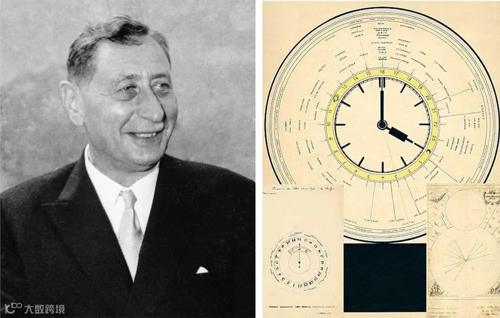 ▲ 路易斯·科蒂尔(Louis Cottier)和他发明的第一块「世界时间」手表. 图片来自:Revolution Watch