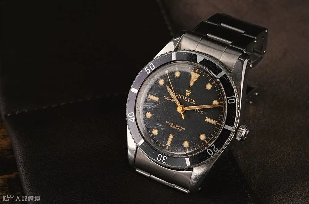 ▲ 劳力士型号 6204「潜水表」. 图片来自:Bob's Watches 1953年劳力士发布首款标注“Submariner”字样的型号6204手表,宣称防水200米,实际性能约100米,奠定了现代潜水表基础[k]