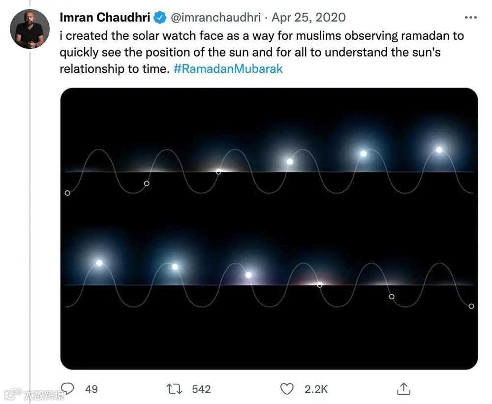 ▲ Apple Watch「太阳刻度盘」的设计师解说. 图片来自:Twitter @imranchaudhri