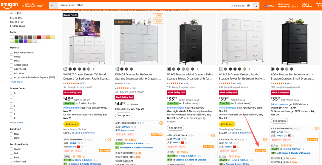 比如如:你搜索“drawers for clothes”,在自然排名前48位中有29个是你的竞品,那么: