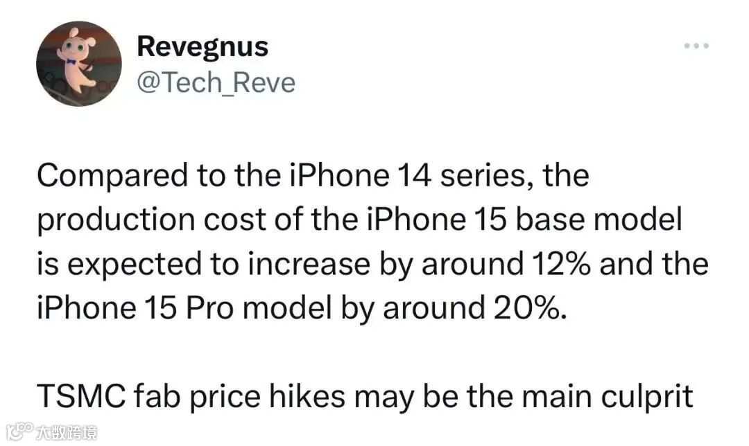 最近,有海外博主透露,iPhone 15标准版机型的成本将增加12%,Pro版本的成本更是会增加20%。