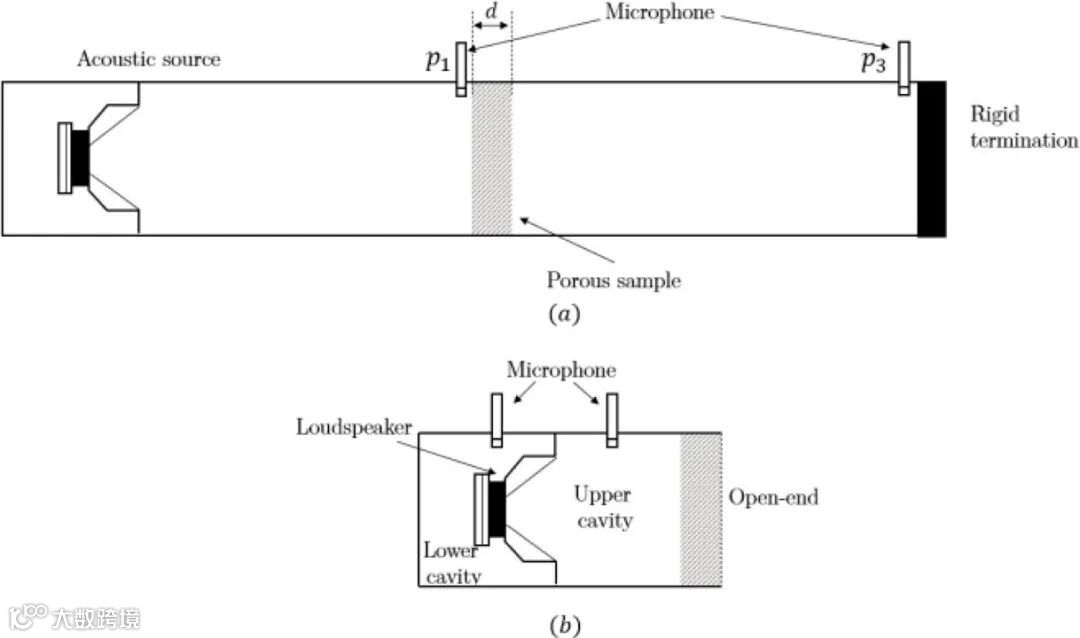 测量流阻率的声学方法:(a)Dragonetti等人建立(Dragonetti等人,2011年),(b)Ingard和Dear建立(Ingard等人,1985年)