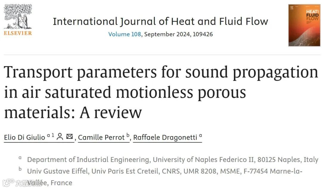 原文来源:International Journal of Heat and Fluid Flow,Volume 108, September 2024, 109426;Transport parameters for sound propagation in air saturated motionless porous materials: A review