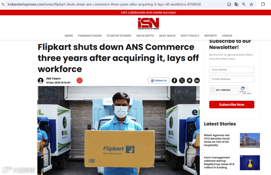 导读:近日,沃尔玛旗下电子商务公司Flipkart已确认将关闭ANS Commerce,并解雇了该平台的110名员工。