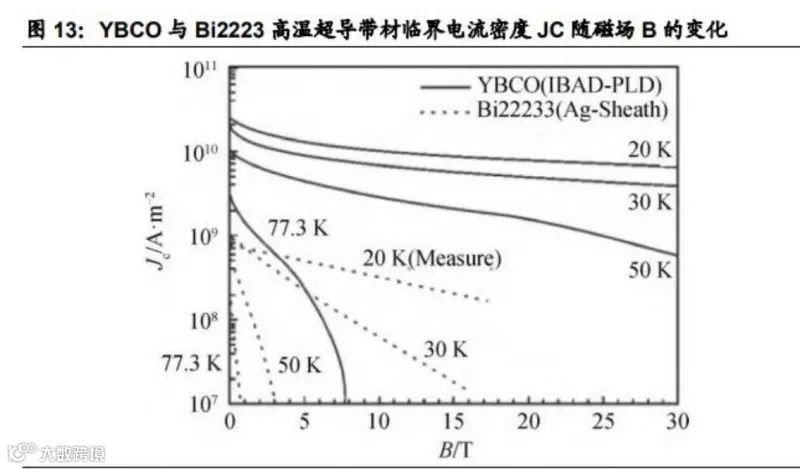 美国牛津仪器(BOST)、欧洲耐克森(Nexans)、日本昭和电线及西北有色金属研究院已具备批量化能力[k]。BOST线材在45T下Je达266A/mm²,西北院产品在14T下Je为60A/mm²[k]。