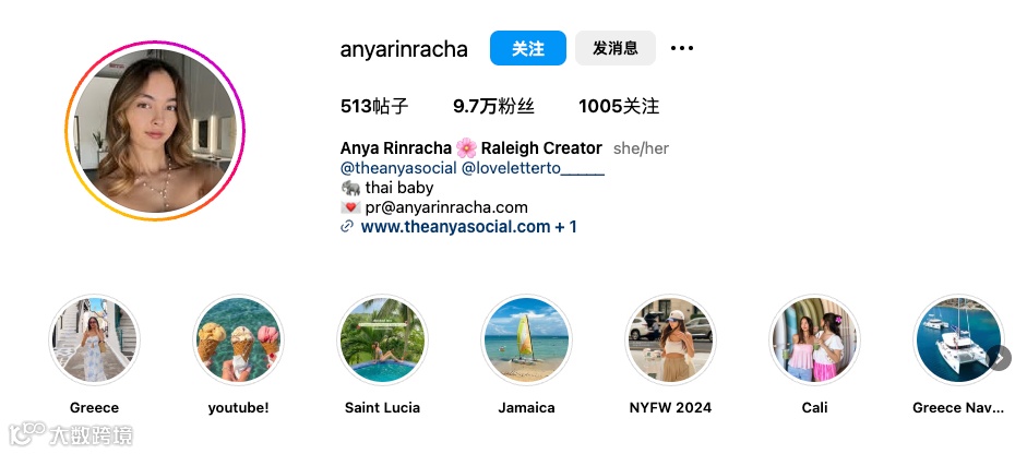 Anya Rinracha,一位Lifestyle类的红人,经常分享自己的旅行和日常生活,她的内容很有网感,这也是为什么她能从素人成长为一个全职红人的原因。