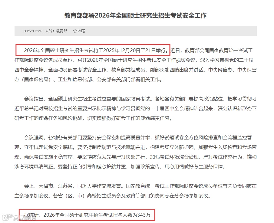 2026年全国硕士研究生报名人数为343万!