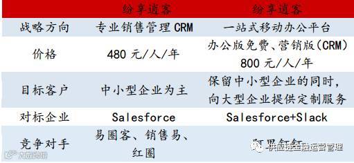 另一方面,纷享科技转型为 CRM 软件公司的另一重要原因就是看到了企业内部办公平台与专注于企业销售的两类公司截然不同的发展空间:前者的领头羊 Yammer 被微软收购估值为 12 亿美金,而后者CRM 领域领跑者 Salesforce 彼时已经市值高达 360 亿美金。