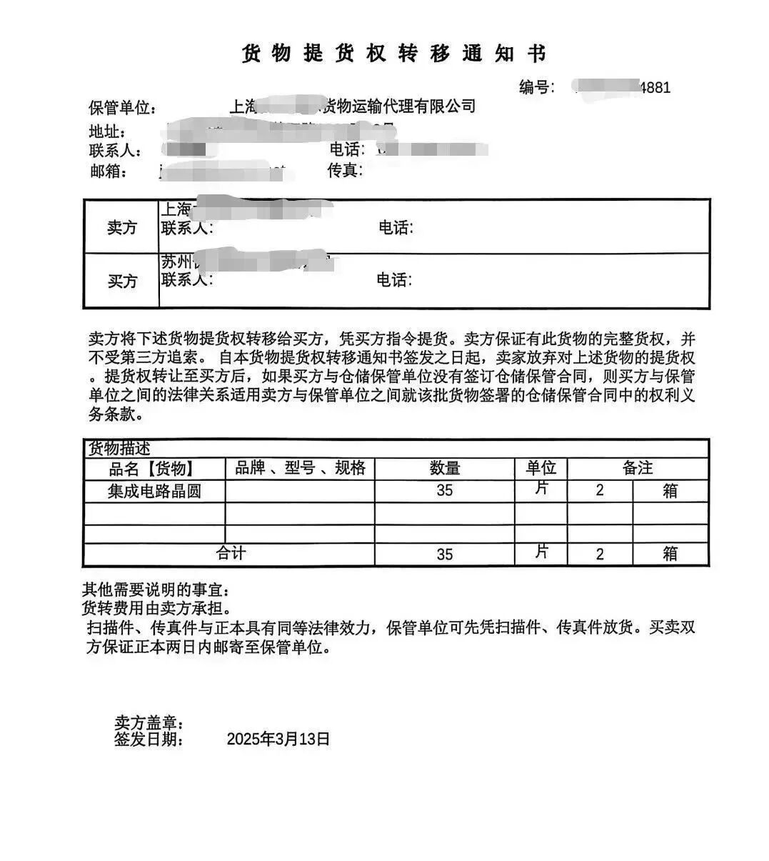 采购端货权转移单