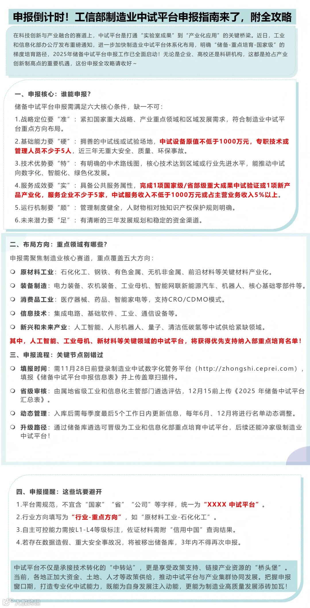 申报倒计时!工信部制造业中试平台申报指南来了,附全攻略