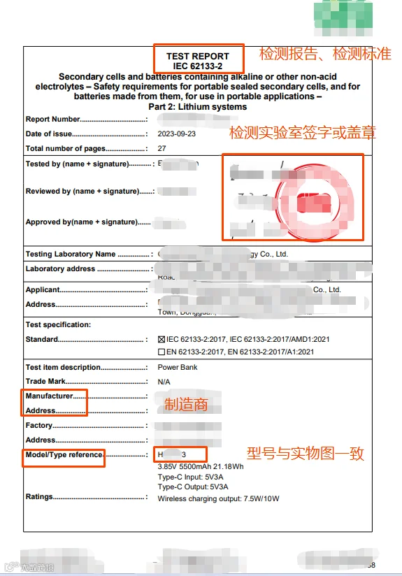 1.实验室出具的官方电池检测报告,含检测实验室名称、签字或盖章