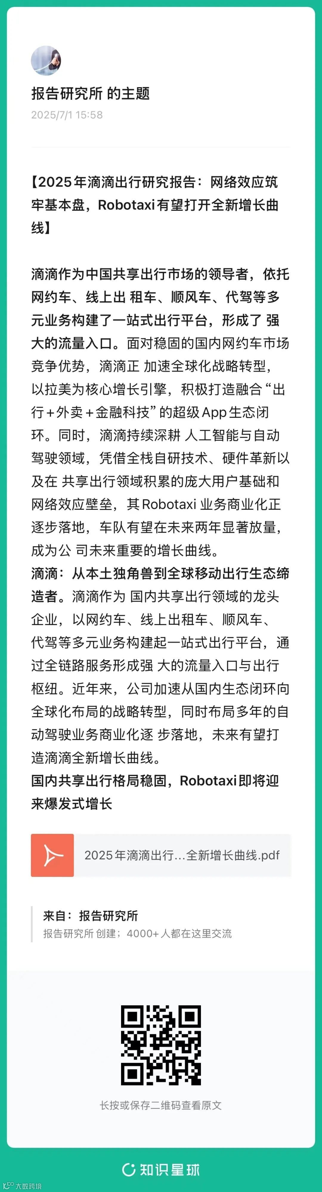 近年来,滴滴持续深化技术布局与生态升级:2023年发布自动驾驶概念车DiDi Neuron及运维中心“慧桔港”;2024年与广汽埃安成立“安滴科技”合资公司;2025年1月升级App 7.0,试运行“海外出行”功能;4月宣布以“99 Food”品牌重启巴西外卖业务;同月联合发布L4级前装量产Robotaxi平台,预计2025年底实现交付。