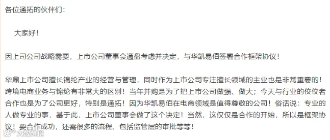 近日,有关华鼎股份出售通拓科技的内部信曝光。从信中表达的意图来看,出售通拓科技的目的主要是为了让华鼎股份能够专注于其专业领域,并将跨境电商业务交给更专业的团队来负责