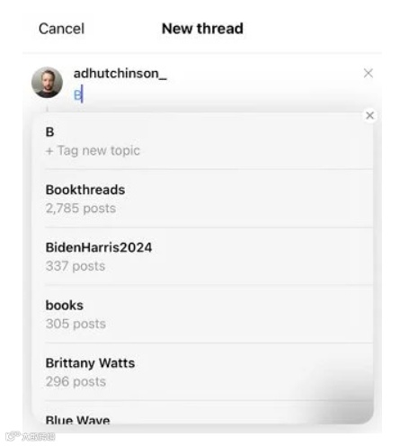 嗯,每当您通过点击编辑器底部的标签按钮输入主题标签时,Threads 实际上都会为您提供推荐主题标签的排名列表。