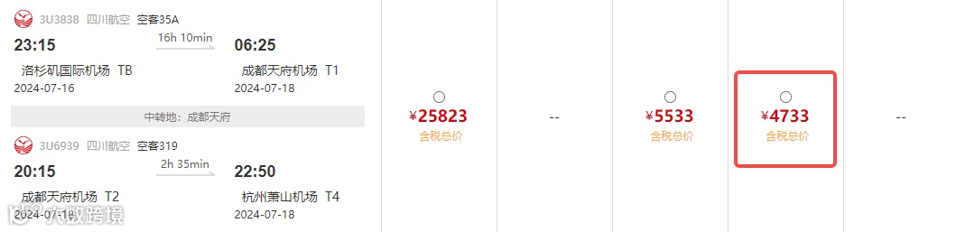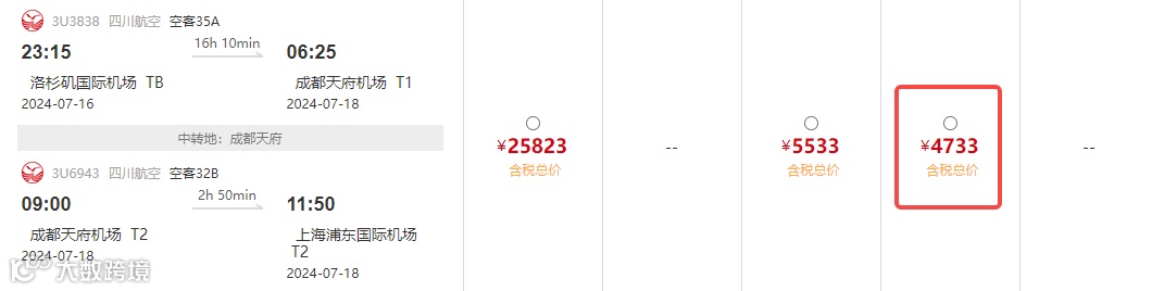 四川航空也推出暑期特价组合航线,适用于从洛杉矶飞往成都后中转至国内多个城市,如西安、昆明、北京、上海、杭州等。