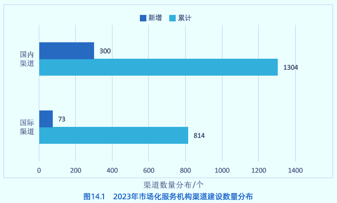 在技术转移服务渠道建设方面,市场化服务机构新增国际合作渠道数量73个,累计布局国际合作渠道814个;新增国内合作渠道300个,累计布局国内合作渠道1304个。