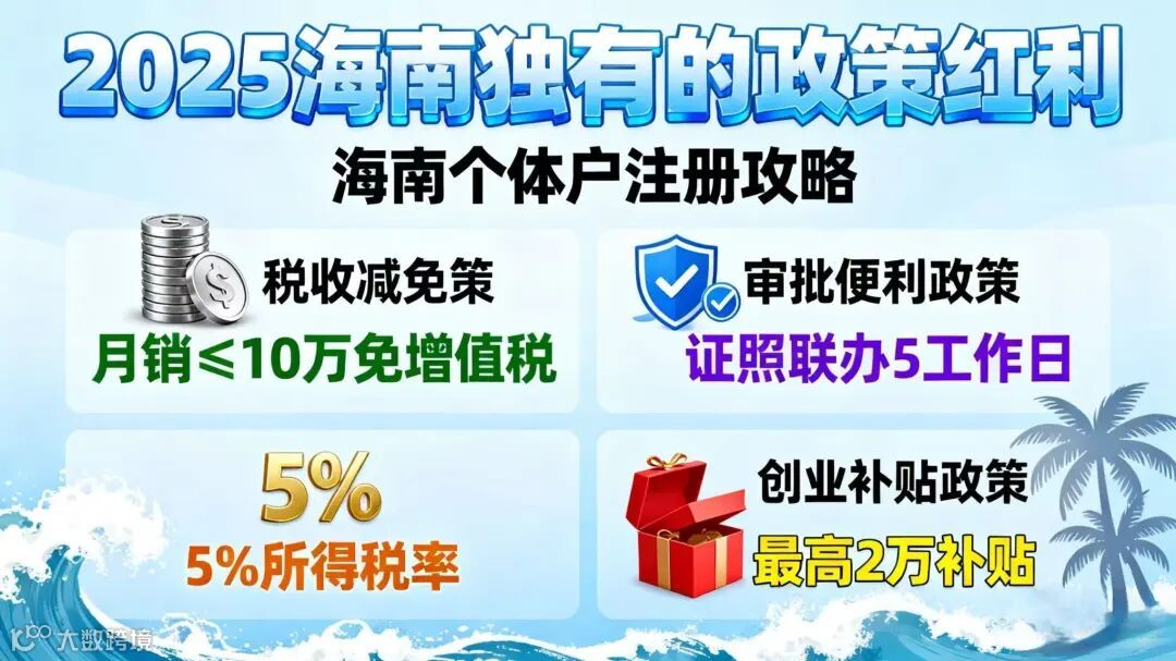 在海南自贸港创业,注册个体户成了许多人的首选。2025 年政策再升级,全程线上办、税负更低、补贴更多,但也有不少新规则要注意。这份简易攻略帮你快速搞懂核心要点,少走冤枉路!