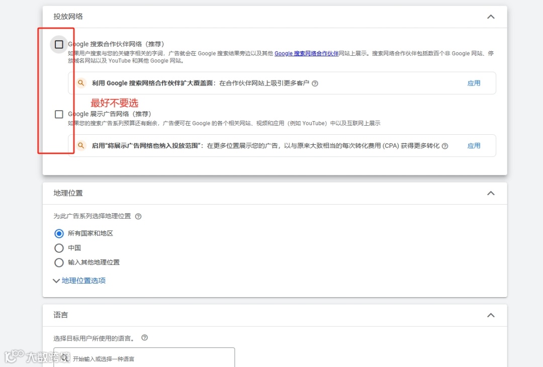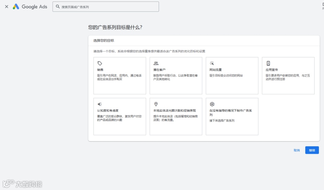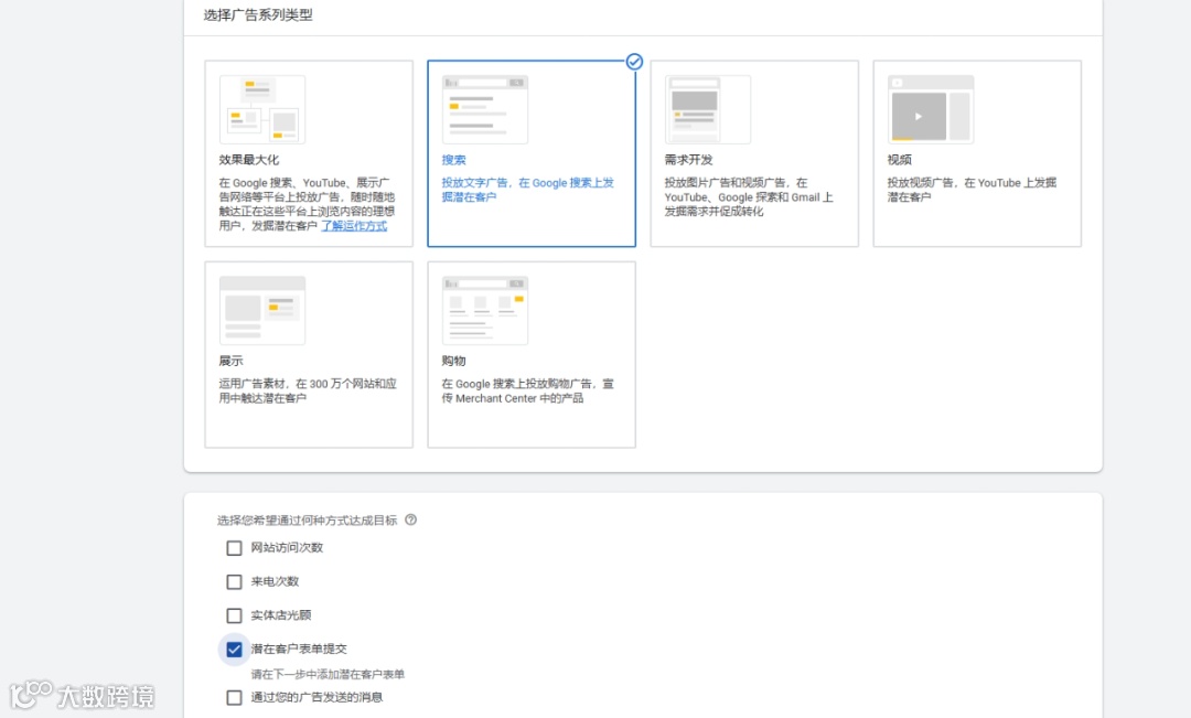 建议新手选择“搜索广告”类型,基于关键词在Google搜索结果页展示[k]。