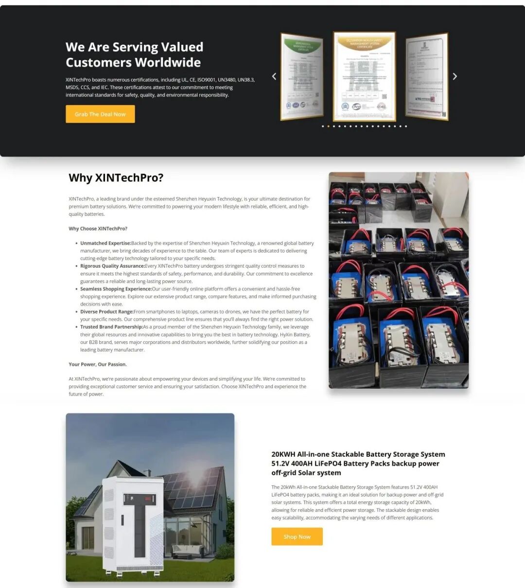 外贸B2B独立站这是我们为一家专注于 锂电池与储能系统解决方案 的高科技企业打造的官方网站。网站全面展示了企业在 LiFePO₄(磷酸铁锂)电池、储能电源、太阳能储能系统及电池模组 OEM/ODM 定制服务 等领域的研发与制造实力,致力于为全球客户提供 安全、高效、智能、可持续 的能源解决方案。