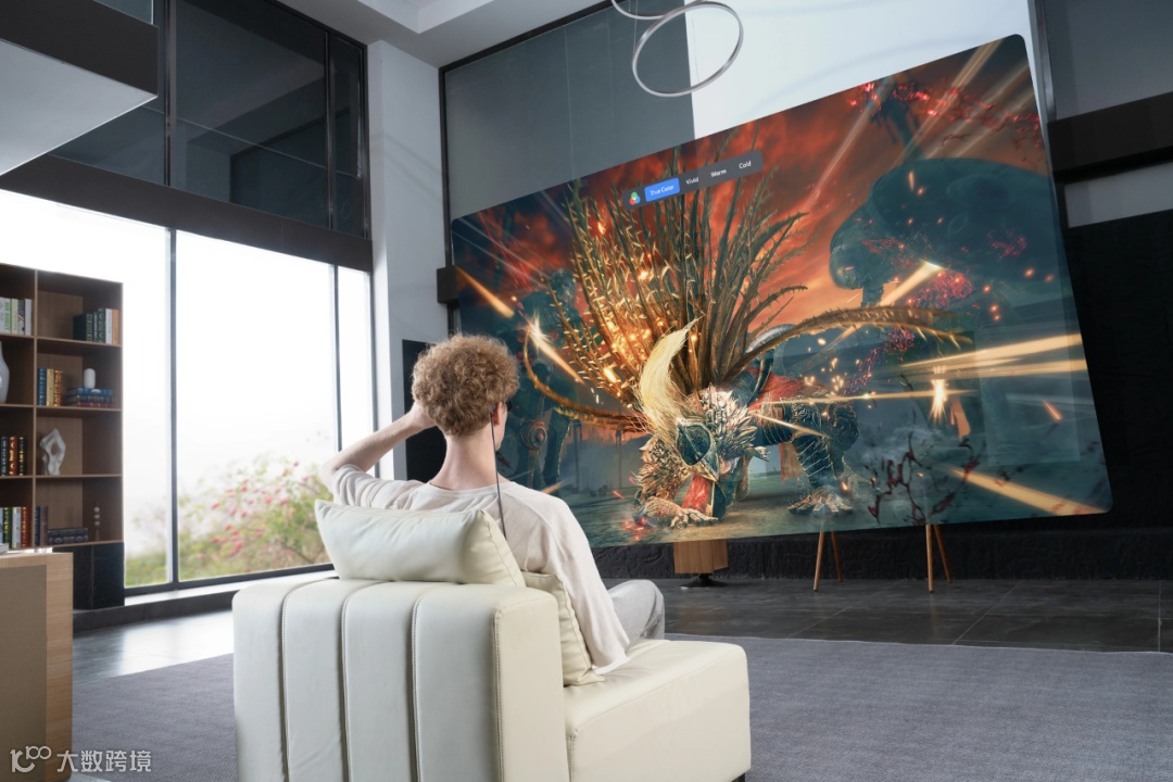 该品牌聚焦AR眼镜的可穿戴性、功能性和沉浸式体验,首创“颈挂计算单元+眼镜显示器”架构,成功将AR眼镜从投屏工具的尴尬定位中解放出来,转变为完整的沉浸式娱乐设备,支持云游戏、Switch等多平台应用,满足用户在游戏、观影、办公等场景下的需求。