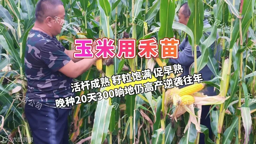 种植户于5月21日播种的玉米,较邻居5月1日播种的地块晚播整整20天,在施用禾苗产品后,不仅实现了活杆成熟的优质长势——植株茎叶始终保持青壮翠绿,宛如正值生长期的青玉米,实则玉米籽粒已完全灌浆饱满、成熟。