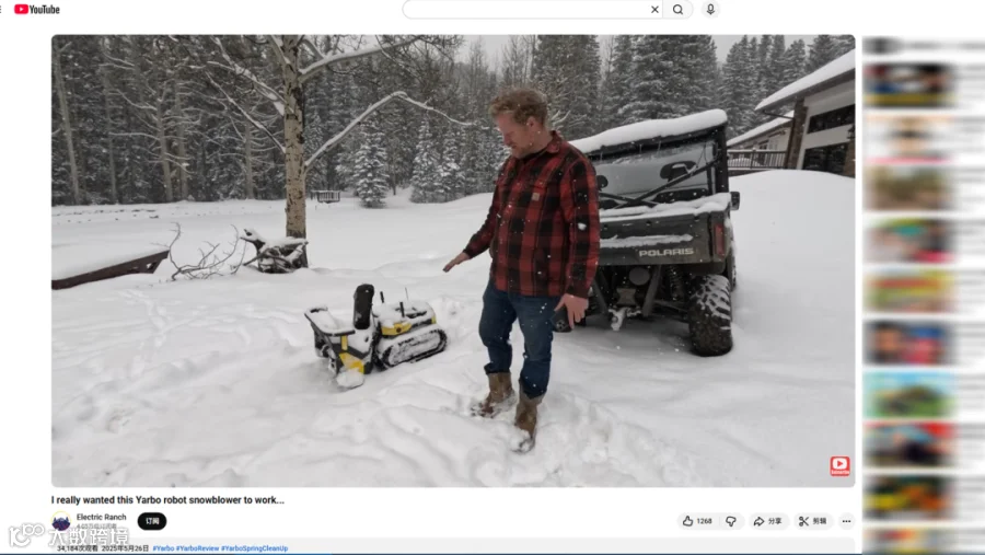 而在YouTube这样以长视频为主的平台上,Yarbo更侧重专业科普内容。它与科技类、园艺爱好者和智能机器人领域的达人合作,通过开箱、操作演示、功能讲解和测评等形式,详细展示扫雪机器人的工作原理和核心亮点,这类内容能让用户更容易理解产品。